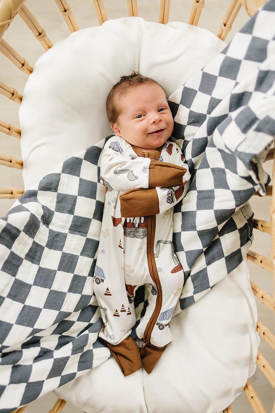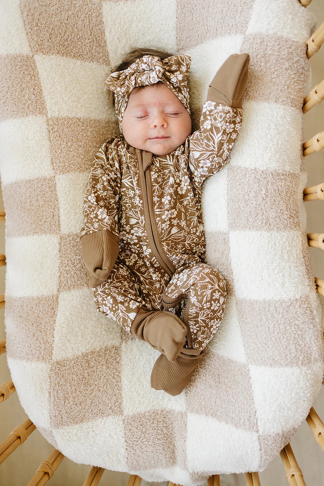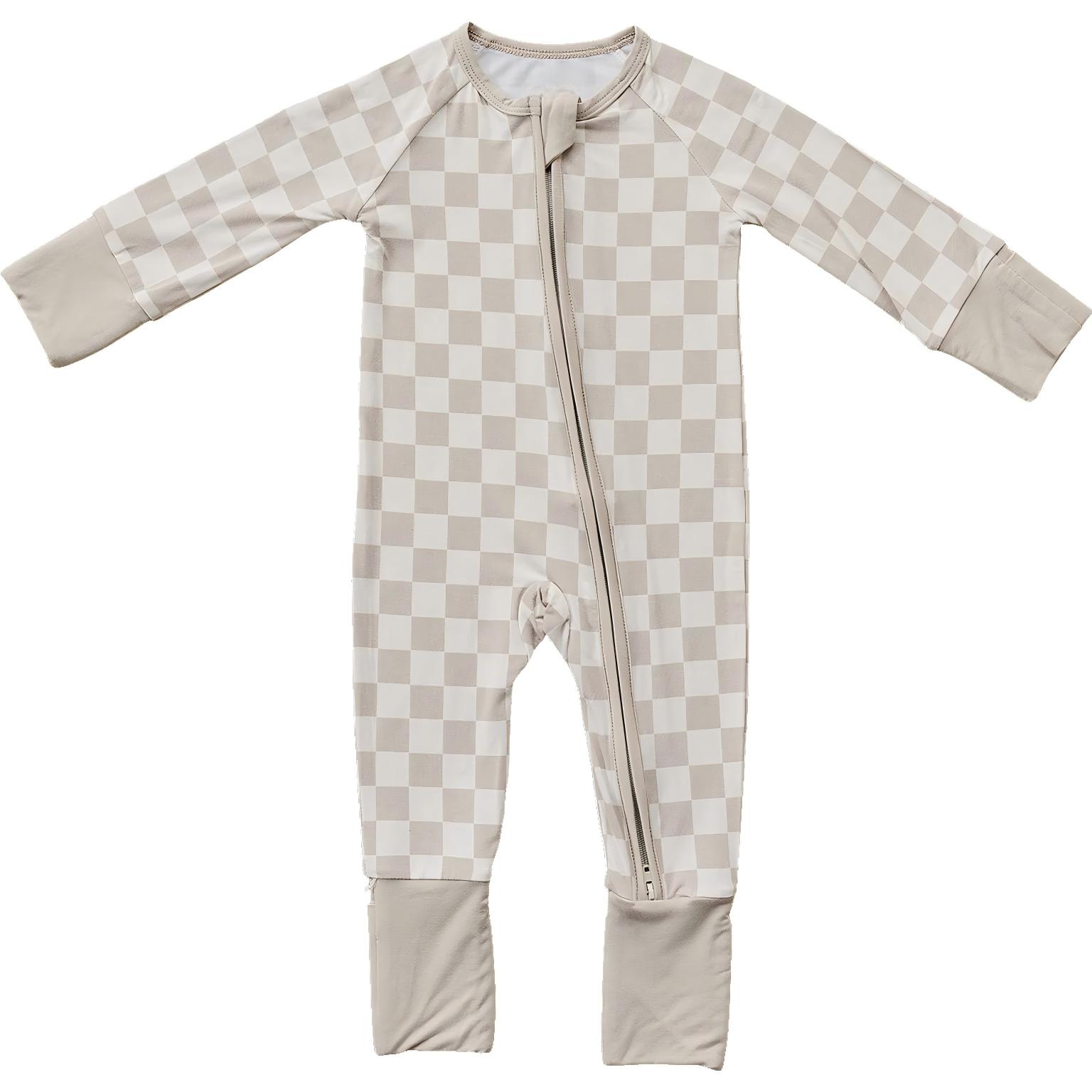 Taupe Checkered Bamboo Zipper