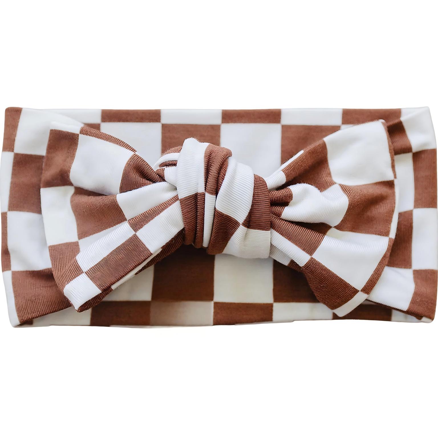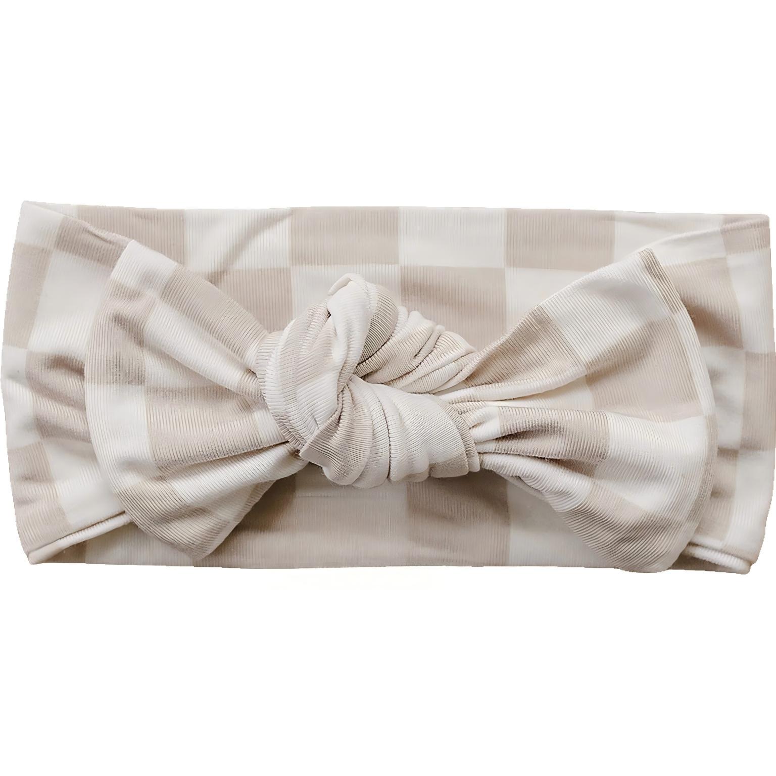 Taupe Checkered Bamboo Head Wrap