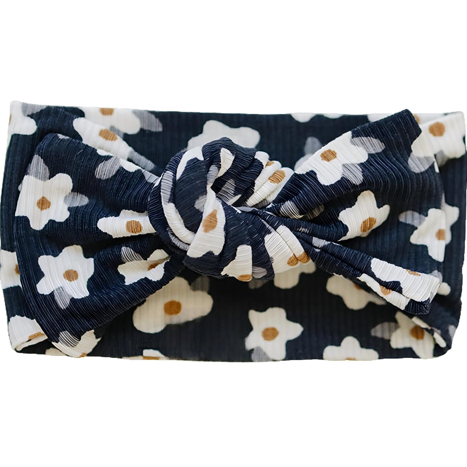 Navy Daisy Ribbed Bamboo Head Wrap