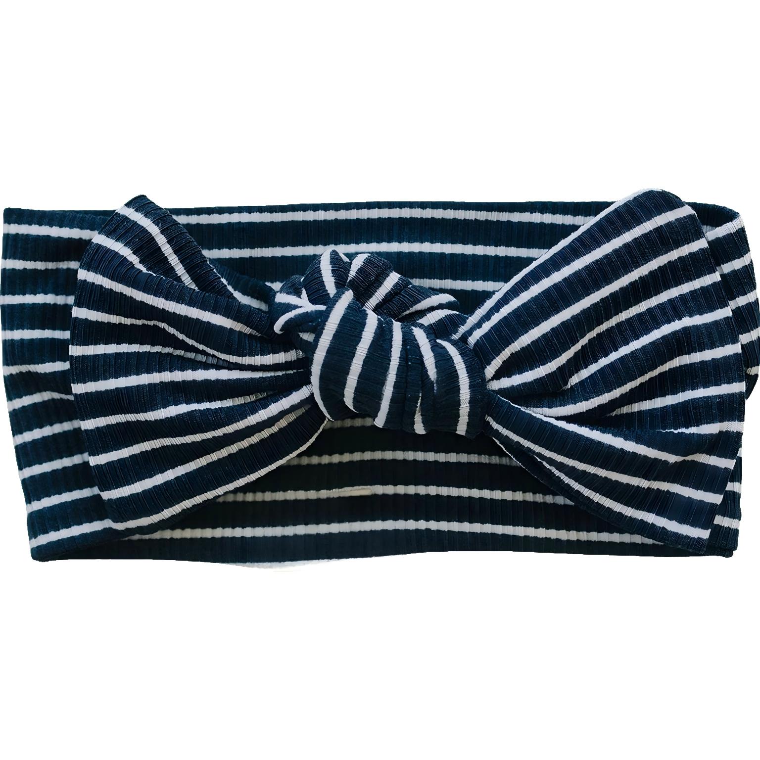 Navy Stripes Ribbed Bamboo Head Wrap
